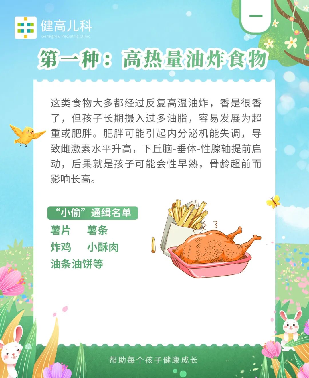 1️⃣ 高热量油炸食物→引起肥胖、性早熟